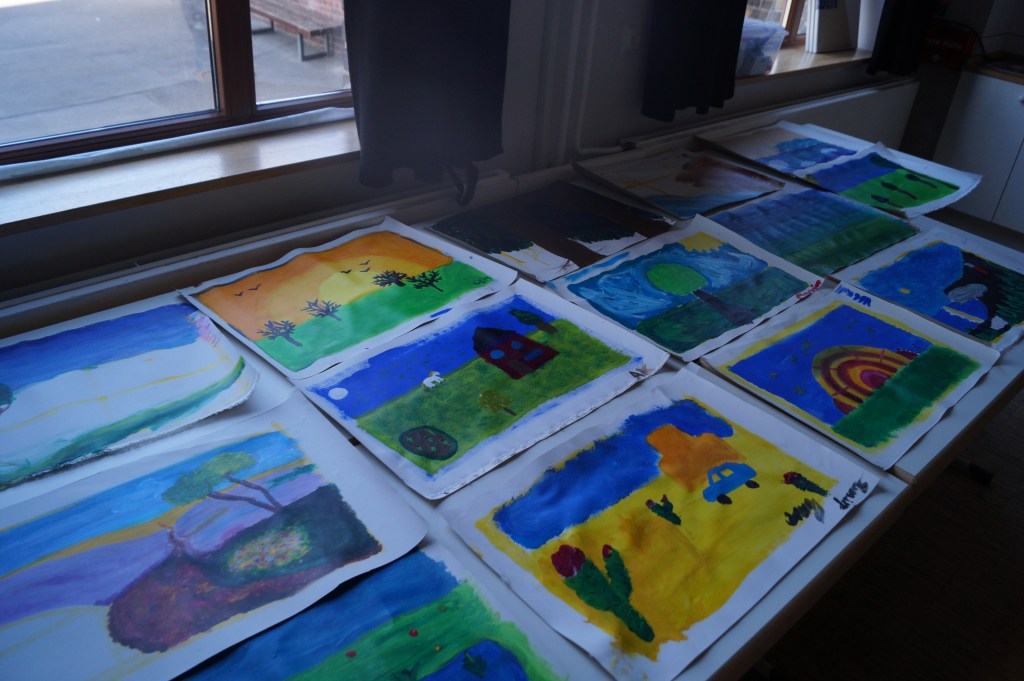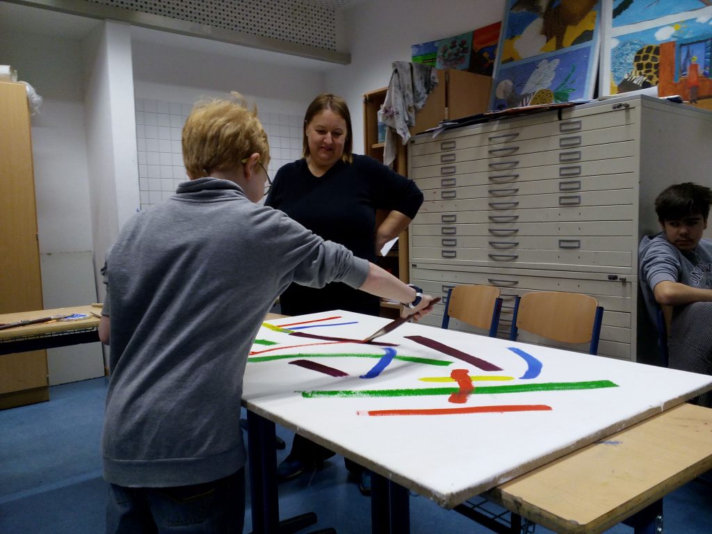 Stage for Play Shreck, St. George Int. School, Cologne 2014 Preparations … Stage for Play Nemo, St. George Int. School, Cologne 2013PreparationsPapermaché Sculpture – raw and …paintedMindmappingThink big – workshop, after visit of exhibition of Joan Mitchell, Cologne 2015.Workshop after visiting exibition of Joan Mitchell, Cologne 2015. Courtesy of Gene Leininger and his friend