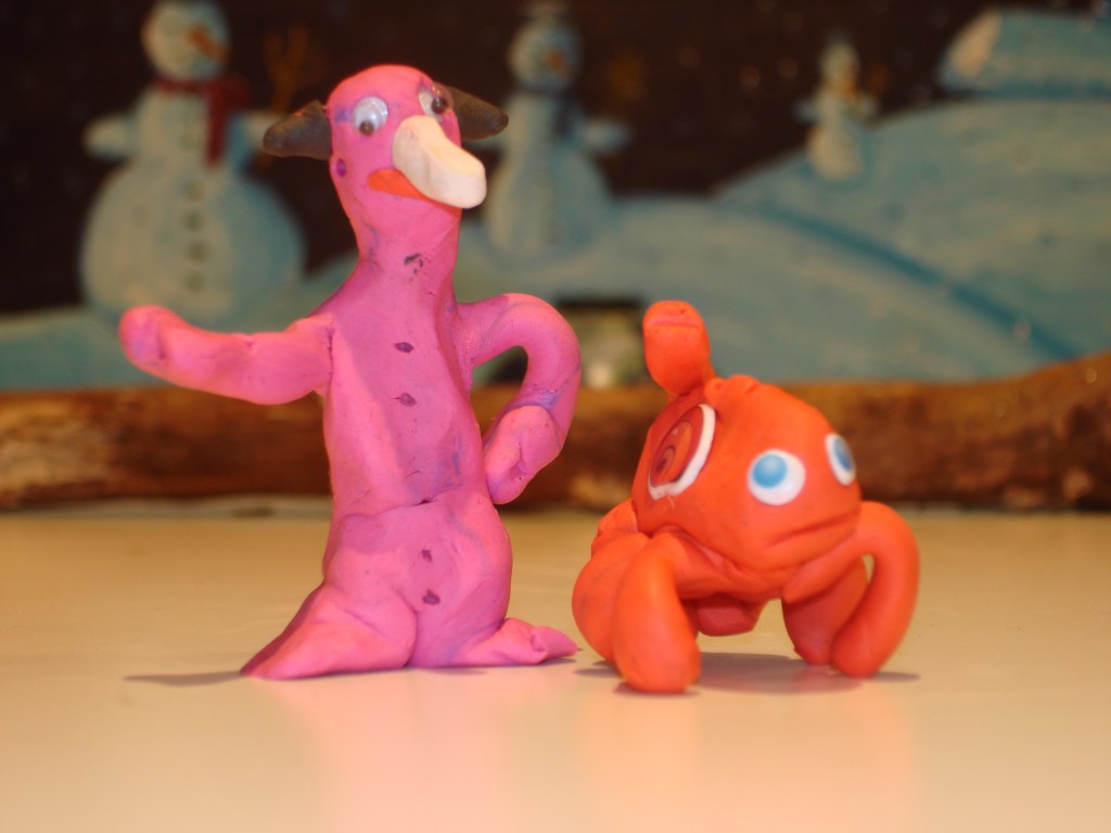 Cut from a short animation. Clay/dough, background: acrylic on canvas, and other materials. Cologne 2012