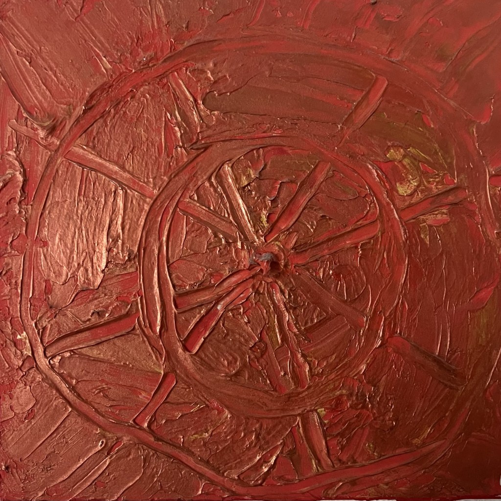 Gene Leininger, Wheel abstract, acrylic paste on canvas, 40×40 cm, Cologne 2018